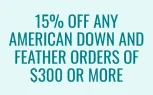 Receive 15% off any American Down and Feather orders of $300 or more!